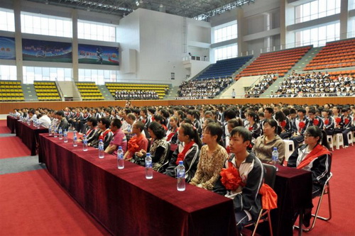 5月28日下午,长庆油田泾渭体育中心馆内灯火辉煌,LED彩色大屏幕上不断滚动着长庆二中“校园十佳”暨各类“明星学生“的大幅照片及“学习身边榜样,书写精彩人生”等标语口号,全校师生、部分学生家长冒雨云集体育中心,参加该校举办的“校园十佳”暨“明星学生”表彰活动。活动一改往日由领导宣读表彰决定,再进行颁奖的固有模式,采用央视《感动中国人物》颁奖形式,邀请该校2011年获得各级荣誉的教职工为获奖学生颁奖。