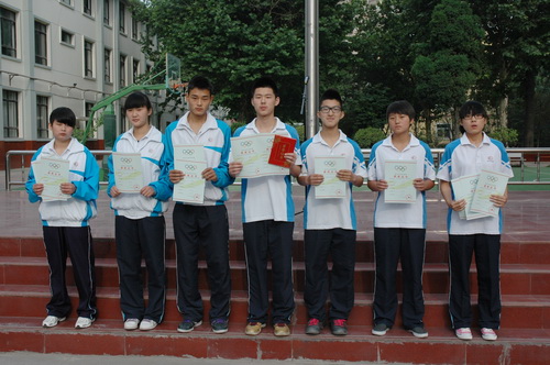 在人民体育场举行的西安市2012年青少年田径赛上,六十六中选派的7名同学随未央区代表队参加了两个组别12个项目的比赛,取得优异成绩,5月28日,学校利用晨会向获奖同学颁奖。