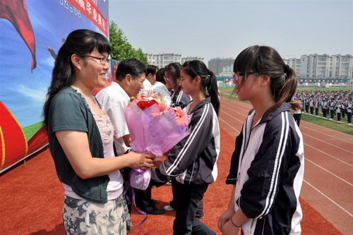 会议在庄严的升国旗仪式中拉开了序幕。高三(4)班陈晓同学代表高2012届毕业生在大会上发言,言辞恳切,催人泪下,声声表达了全体毕业生对母校的深情眷恋和对老师的感激之情,句句打动着每位师生的心,会场气氛感人;高三毕业生向三年来辛勤培育自己成长的老师送上了鲜花和祝福,给母校赠送了象征繁荣昌盛的铜鼎;该校李正会副校长宣读了长庆二中表彰高2012届优秀毕业生的决定,校领导为曹毓戈等11名优秀毕业生颁发了荣誉证书和奖品;最后该校罗润子校长发表了热情洋溢的讲话,他对本届高中毕业生顽强拼搏的奋斗精神给予了高度赞扬,对为学生成长呕心沥血的高三年级教师给予了高度评价,并送上了母校对高三学子的深深祝福,再次发出了加快长庆二中发展、振兴石油普教事业呐喊,极大的鼓舞了全校师生的斗志。