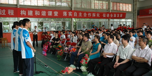 会上,年级组长赵明简要回顾了本届高三学生的学习成长历程,对同学们的未来表达了良好祝愿。高三(1)班野轩瑞代表全体同学发言,表达了对母校和老师三年来培养的感激之情和对高考的决心。高三年级学生代表向母校赠送了毕业纪念品,向全体老师敬送鲜花,表达对母校和恩师的感恩之情。常务副校长席进忠对同学们进行了高考答题技巧辅导。高二年级组长张静喜代表非毕业年级教师祝愿高三同学在今年高考中取得辉成绩。高一年级56名学生代表向高三学子献上《十二年青春无悔》诗朗诵、高二4名学生向他们献上《壮志在我胸》歌曲,会场掌声不断,将气氛再次推向高潮。大会在《毕业歌》歌声中胜利落幕。