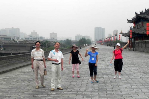 早晨八点钟,参赛教师从古城墙的北门——安远门出发,由东向西到到达西门——安定门,再从西门到南门——朱雀门,从南至东到达东门,由东向北,绕古城墙一周,回到出发点,整个行程近十五公里。