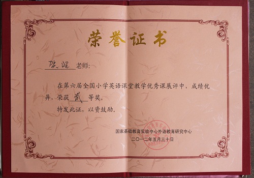 5月27日至31日在重庆市举行的“第六届全国小学英语教师教学基本功大赛”拉下了帷幕,西安泾河中心学校贺昭老师荣获“全国优秀课例二等奖”,该校中学英语高级教师郜建明和小学英语高级教师王克荣作为她的指导教师,荣获“优秀指导教师奖”。
