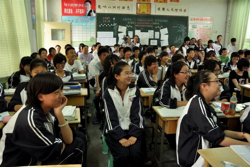 2012年6月4日,长庆二中南教学楼高二(1)班教室被挤得满满当当,教室过道、后门,到处都是老师和学生,原来这里正在进行着由高二(1)班策划并召开的主题为“备战高三,成就梦想”---准高三学生动员教育主题班会,该校主管德育的领导、学生家长代表、高二、高一年级各班的班长、团支部书记等共计80余人观摩并参与了本次主题班会活动。
