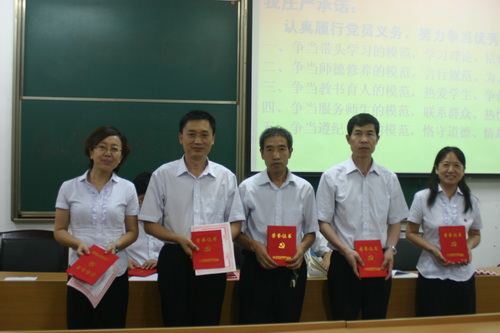大会表彰了石油普教中心、咸阳市渭城区教委、学校党总支各级优秀共产党员和优秀党务工作者,举行了新老党员宣誓仪式,全体党员面对党旗作了创先争优的集体承诺,学校第二支部书记党宪政上了题为《立足岗位做贡献 教育教学当先锋 》的党课。