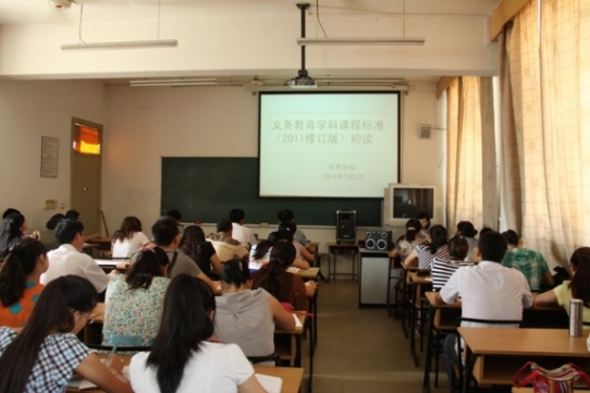 7月3日至5日,礼泉分校利用放假前夕对教师进行了为期三天的新课标培训。在培训过程中,主管教学的沈副校长做了2011版新课标的解读报告,从新旧课标的对比、新课的背景、新课标的学习方法等方面进行了解读;教研主任李斌老师做了“昌乐二中学习感悟”的汇报,从昌乐二中的教育理念、大德育、校园文化、班级文化建设、海量阅读、“271”高效课堂等方面做了详细的汇报,并通过小组讨论、个人自学、写心得体会等多种形式展开扎实、细致的培训,对假期教师个人自学也作出了具体要求。通过三天的学习,全体教师对2011版新课标有了较全面的认识,对课堂教学改革的教育理念及“271”高效课堂等有了更为深刻的认识。