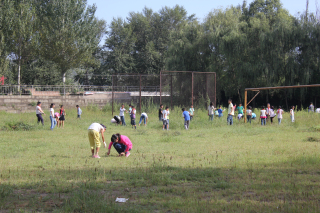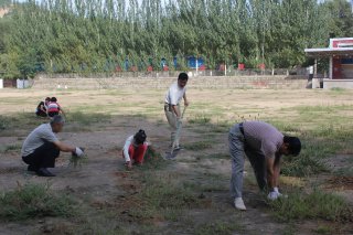 二是8月23日下午,德育处组织全体教师及三至六年级学生对操场的杂草进行了一次大的清理。经过一个暑假,操场杂草丛生。在整个除草过程中,各班主任认真组织,并与学生一起劳动,其他教师也都热情高涨地投入到劳动中。操场上,有用手拔的,铲子铲的,还有骑车运草的,这都充分体现出了长庆七中全体师生不怕苦、不怕累的精神。整个劳动组织有序、分工明确,仅用一个小时,杂草基本清理完毕,操场的卫生面貌焕然一新,师生脸上都洋溢着满意的笑容。