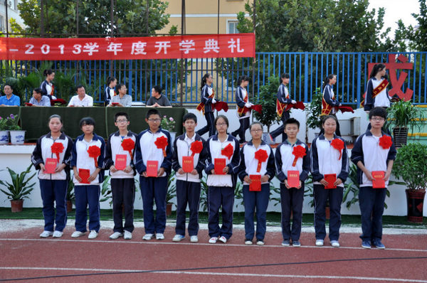 典礼在庄严的升国旗仪式之后拉开了序幕。首先,该校马兆来、孙建国副校长,黄建军主任分别宣读了长庆二中《关于表彰上学年三好学生、优秀学生干部、先进班集体的决定》、《关于表彰“走进家庭、携手育人”大家访活动先进集体和优秀教师的决定》及《关于表彰奖励课改优秀学习小组、优秀学习小组长的决定》等表彰决定,共有李扬等135名优秀学生、初一、5班等11个班级、初一年级组、安玉祥、李锐珍等15名教师受到了表彰奖励。接着,初中升高中优秀学生汪琪代表全体学生做了新学期的表态发言。在热烈的掌声中,该校罗润子校长做了《新学年、新起点、新目标、新要求》的动员讲话。在讲话中,罗校长回顾了长庆二中在过去一学年中所取得的成绩,提出了新学年工作的发展思路和策略,围绕发展策略所要开展的重点工作,为使各项工作落到实处,他对全体师生分别提出了具体的要求。他号召全校上下要以新学期为新起点,以满腔的热情、饱满的精神和坚定的信念,在二中这块沃土上播种希望,洒下热情,奉献智慧,为创造二中更加美好的明天而努力奋斗!