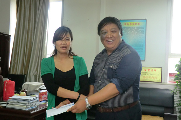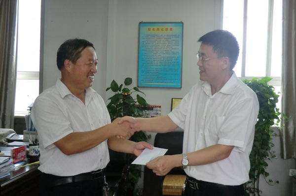 9月10日教师节庆祝表彰大会之后,校长肖志峰、书记卢长明代表石油普教中心向在生活中遇到困难的两位教职工赠送了节日慰问金,并向他们转达了中心领导的关心和祝福,希望他们保重身体、克服困难,以高度的热情努力工作、幸福生活,报答各级领导和全体教职工对他们的深切关爱。