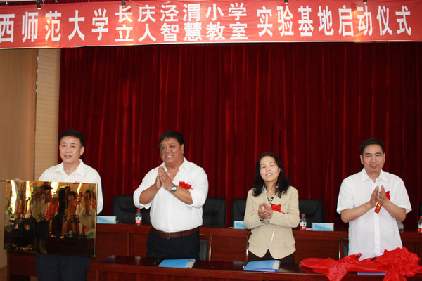 2012年9月20日早晨,陕西师范大学“长庆泾渭小学立人智慧教室”实验基地在全校师生的期待下正式启动。启动仪式在长庆泾渭小学大会议室隆重举行,出席会议的领导有陕西师范大学新闻传播学院副院长张文兰、西安立人集团总经理岳林、长庆泾渭小学校长肖志峰、长庆泾渭小学党支部书记芦长明。参加会议的还有陕西师范大学、立人集团工作人员代表及新闻媒体单位50余人。