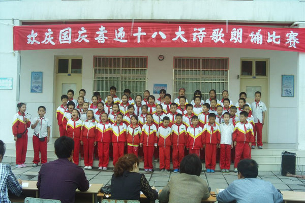 金秋九月,秋风送爽。在国庆佳节来临之际,长庆泾渭小学于9月26举行了欢庆国庆,喜迎十八大诗歌朗诵比赛。适时对学生进行了一次热爱党,热爱祖国的教育。参赛的班级精神饱满,服装整齐,用整齐、宏亮和充满激情的语言表达了对党、对祖国的无比热爱之情。经过评委的认真评比打分,对获得前三名的班级进行了奖励。