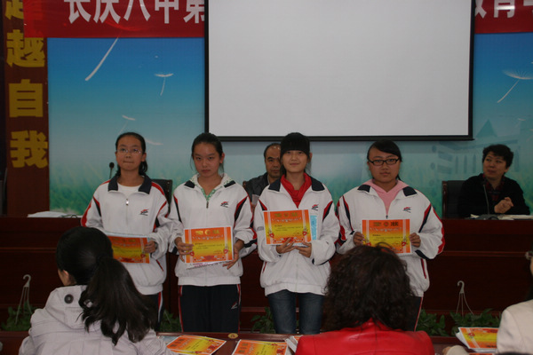 年级排名前五名的同学介绍了各自的学习经验。这五名同学毫无保留的经验介绍,受到了师生高度的称赞。有6位学生代表作了下一阶段学习、生活的表态发言。刘冬梅副校长就初三年级开学来的各项工作进行了全面客观地总结,肯定了成绩,指出了存在的问题,并提出了奋斗的目标及方向。