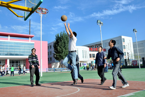 2012年10月18日下午5:30分,从“国庆”前夕开始,为期二十余天的长庆二中“教职工三人篮球赛”活动,伴随着裁判一声清脆的哨声落下了帷幕。