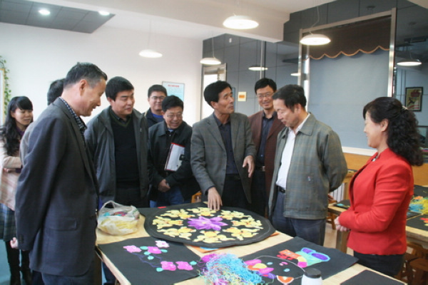 省教育厅语言文字工作处处长王林生(右二)一行参观学校纸雕室