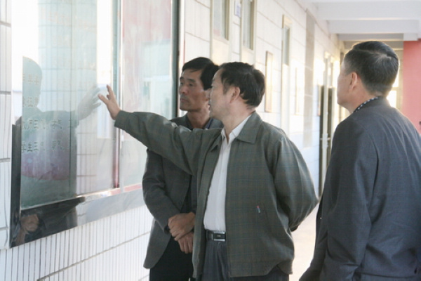 省教育厅语言文字工作处处长王林生(中二)查看学校墙壁文化布置情况