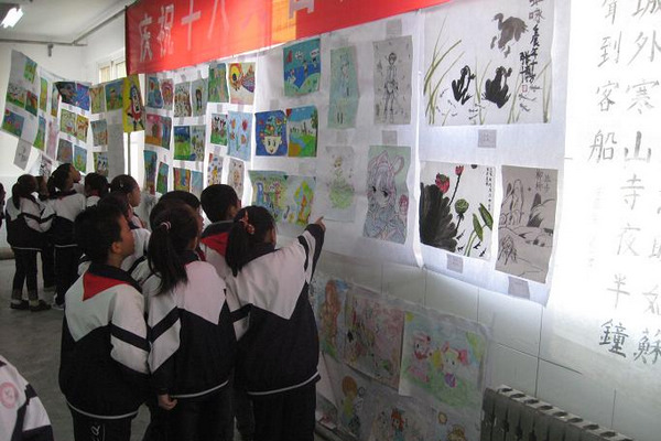 为了喜迎党的十八大召开,活跃校园文化生活,10月30日至11月7日,咸阳长庆子弟学校举办“喜迎十八大”学生书画作品展。