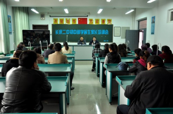 2012年11月6日下午,长庆二中在该校化学实验室对初中部40多名待优生家长进行了专题培训活动,该校德育处主任黄建军为全体家长做了主题为《教孩子做人树学生自信 走成功之路》的专题讲座,收到了良好的培训效果。这是该校继上周召开的待优生座谈会之后又一次为转化待优生而开展的重要教育活动之一。