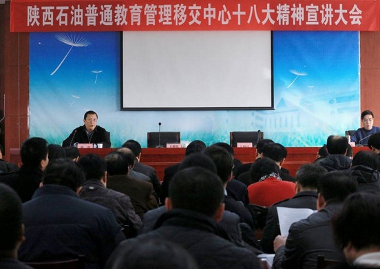 2012年12月6日下午,石油普教管理中心隆重举办了十八大精神宣讲大会,并向所属学校(单位)党组织发放了新党章。