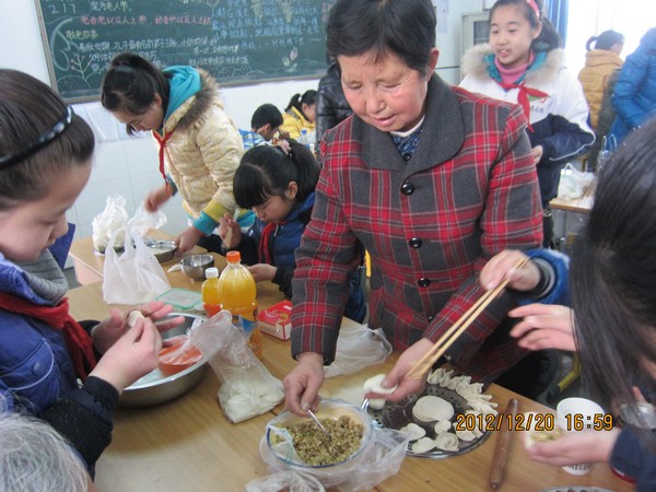 冬至是中华传统节日之一,在中国北方地区有“冬至”宰羊、吃饺子、吃馄饨的习俗。每年冬至节,礼泉分校都会让各班根据实际情况举办“迎冬至,包饺子,感亲情”系列活动,经过多年的实践,这项活动已经成为该校的一项较有特色的学生实践活动。