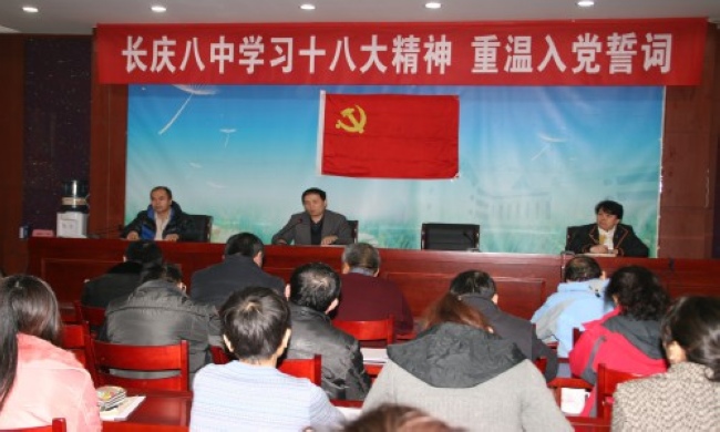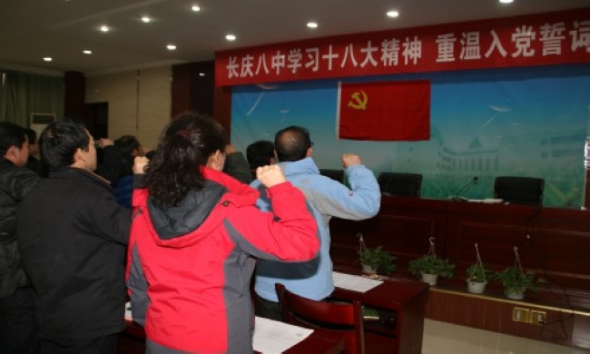 12月26日,长庆八中组织全体党员进行了学习十八大、重温入党誓词的宣誓活动。