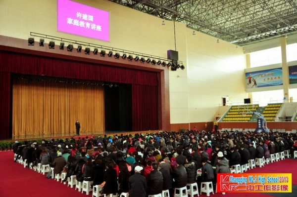 为引导广大学生家长开阔教育视野,树立正确的家教理念,形成科学健康的家庭教育模式,给青少年营造良好的生活成长环境,2013年1月27日下午,长庆二中在长庆油田泾河体育中心举办了家庭教育报告会。中国教育学会理事、西安市教育学会许建国会长应邀参加了这次报告会,并为该校全体学生家长作了精彩的家庭教育专题讲座。报告会由学校副校长孙建国主持。