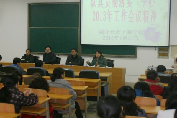 2013年1月31日,咸阳长庆子弟学校召开教职工大会,传达中心工作会议精神,重点学习了中心王智兴主任的工作会议报告。
