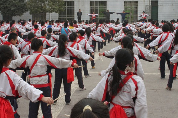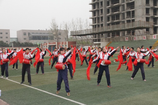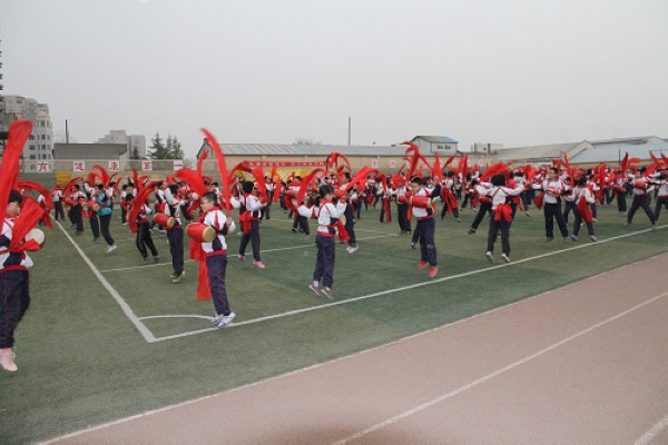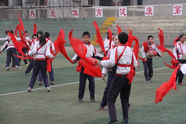 良好的开端是成功的一半。有了250多人的队伍,有众多的体育、音乐教师、班主任教师已经熟练掌握基本功和要领,现在学起来就容易多了。师教生、生教生,师生互学共学的场面随处可见,大课间时,校园到处是鼓声,到处是练习腰鼓的身影。铿锵的腰鼓打起来,红红的彩绸飘起来,欢乐的节拍动起来,展示出学生积极向上、意气风发的精神风貌。