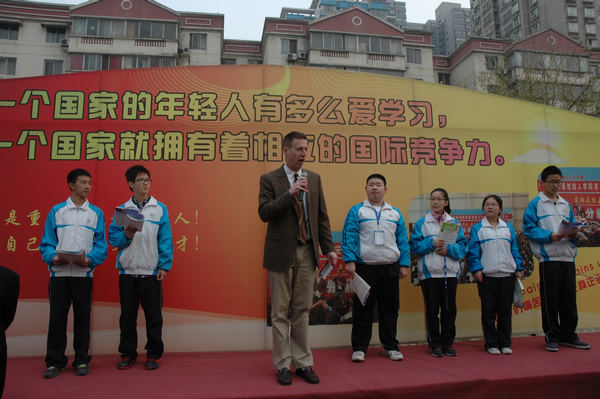 3月29日早晨7:00,Greg Dinse先生观看了六十六中疯狂英语晨读,并充满激情地为同学们现场领读了六十六中学生的励志口号。