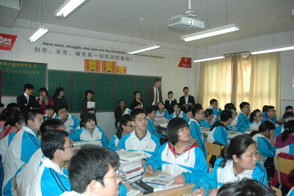 下午2:30,在学校小会议室,Greg Dinse先生与学校领导、中层干部、年级组长及部分英语教师就中美中小学教育、教学、管理等方面的问题进行交流座谈。