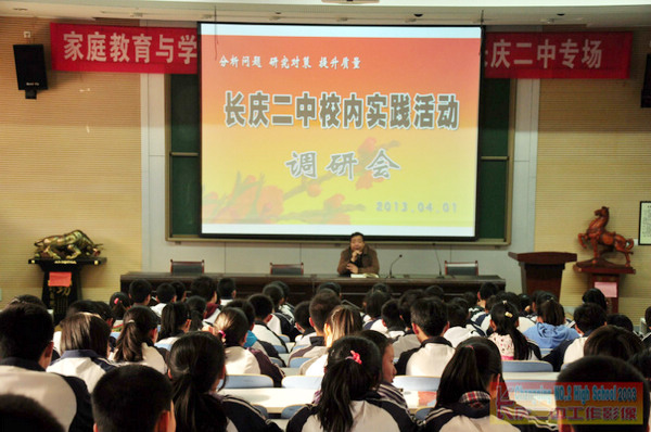 为了进一步加强和改进学校德育工作,增强德育工作的针对性和实效性,推进学校德育工作再上新台阶,2013年4月1日下午,长庆二中对在本校已经开展的以“自我服务、自我管理、自我提升”为主题的校内实践活动落实情况进行了座谈和调研,该校各班班干部、负责校内实践活动考核和督察的同学共计130多人参加了座谈调研活动,调研会由该校德育处黄建军主任主持。