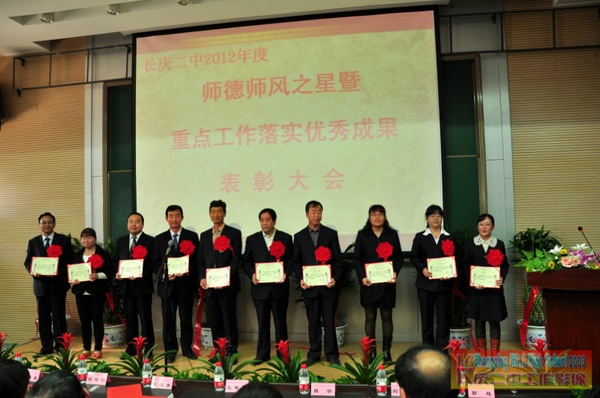 长庆二中隆重举行2012年度“师德之星”暨“重点工作落实优秀成果”表彰大会