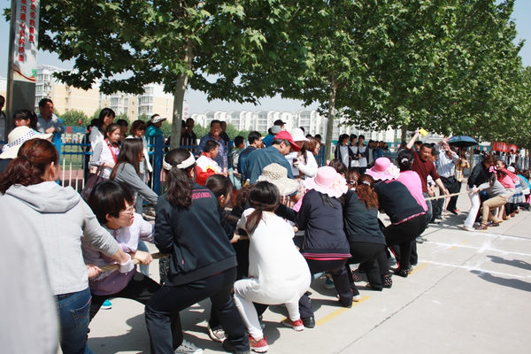 为隆重庆祝“五一”国际劳动节,充分展示全体教职工在构建和谐校园、努力提升教育教学质量、不断深化课堂教学改革等方面的主力军作用和昂扬向上的精神风貌,长庆泾渭小学于2013年4月27日上午隆重举行了教职工体育运动会。运动会设有教职工男子100米接力赛、女子100米接力赛、男子拔河比赛、女子拔河比赛等多个项目,比赛场面热烈、规模宏大,参赛教职工达到120多人次。