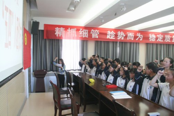 在嘹亮的团歌声中,新团员入团仪式正式开始。大会宣读了新入团团员名单,并举行了庄严的入团宣誓仪式。新团员们站在鲜艳的团旗下庄严宣誓:“我志愿加入中国共产主义青年团,坚决拥护中国共产党的领导,遵守团的章程……为共产主义而奋斗。”表达了同学们对共青团组织的无限向往和为团组织增光添彩的豪迈激情!