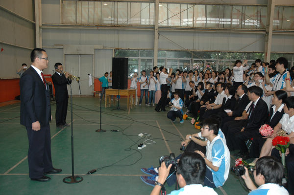 高三年级组长张静喜代表全体老师感谢学校领导对年级组工作的关心指导,回顾三年来2013届师生共同奋斗的历程,希望同学们在高考和未来的工作学习上百尺竿头,为母校争光。高三学生代表王金玥表达了同学们对学校领导和老师们的衷心感谢,感谢他们的谆谆教导,感谢他们为同学们的成长呕心沥血,表示同学们一定会用最好的状态,最优异的成绩,向学校和恩师们献上最满意的答卷。