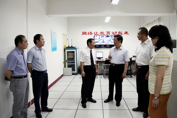 随后,董市长来到位于教学楼三楼的考试指挥中心,听取了监控室工作人员的介绍,并询问了监控系统的运行、调试情况、监控的范围、功能和作用,并叮嘱学校要确保网上巡监系统运行正常。