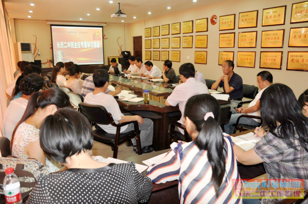 6月5日下午,长庆二中召开了2012—2013学年度第二学期班主任专题学习会议,会议的主题是“让学习成为责任,让读书成为习惯,让业余更有意义”。该校领导、部门主任、年级组长、全体班主任及德育处全体工作人员共40多人参加了本次学习活动。