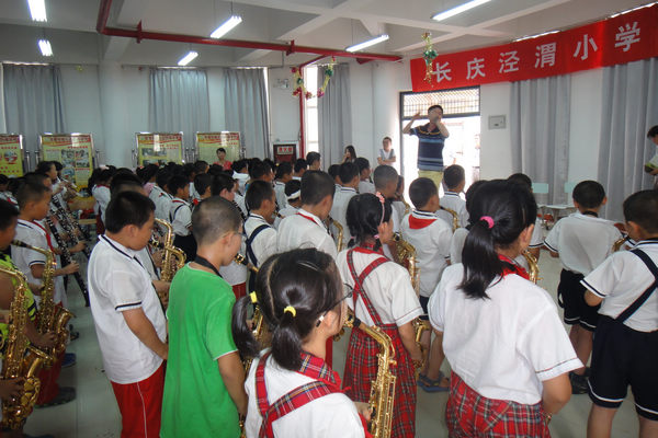 长庆泾渭小学百人乐团成立于2010年,在校领导的高度重视下,配备了一支专业性强,认真负责的教师队伍,在他们的辛勤培育下培养出了一批批爱好音乐,兴趣广泛,具有艺术技能的优秀学生。