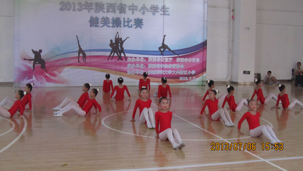 2013年陕西省中小学生健美操比赛于7月5日至7月6日在陕西师范大学大兴新区学校举行,来自全省各地市的23个代表队共300多名运动员参加了比赛。