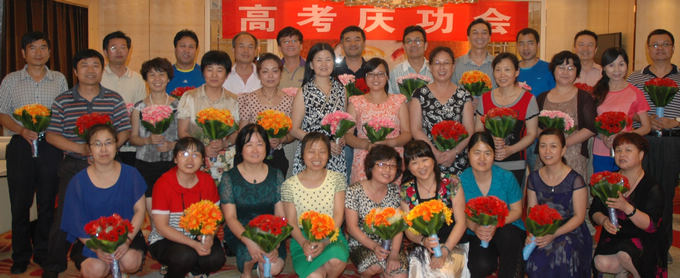 庆功会上,学校领导还为高三年级每位老师送上一束热情的鲜花。