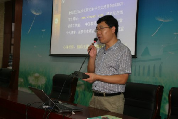 这次他给八中全体老师以具体的事例,亲切的口吻,贴合教师实际工作的状态给大家上了一堂精彩的教育课,他从何为人师?何为师表?什么是学生?你认为班级管理的核心是什么?什么是教师专业成长?什么是班主任专业发展等一系列教师关心的普遍问题深入浅出的加以阐明,让老师们实现“从追求‘知识传递’到关注‘生命成长’的思维转变”,实现“从追求‘生存自由’到建立‘职业信仰’的精神转变”,实现“从追求‘个人专业成长’到引领‘团队专业发展’的行为转变”,实现“从追求‘成名成家’到创造‘教育幸福’的价值转变”,用扎实的脚步从平庸走向优秀。同时给全体老师强调了读书的重要性及班主任管理班级的十大金钥匙。让老师们受益匪浅。