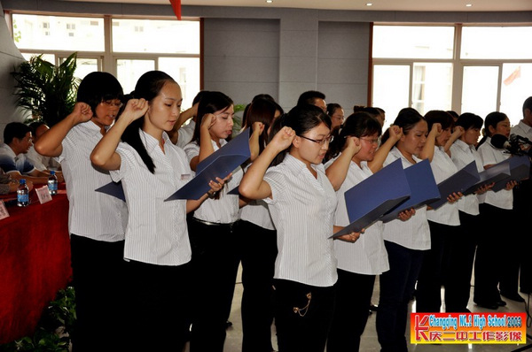 大会还对上学年中心级模范教师、优秀教师、优秀教育工作者及校级先进集体、优秀班主任、先进教师和优秀教育工作者,为在质量提升工程中做出突出贡献的高2013届、初2013届全体教师进行了表彰奖励。最后,由30人组成的教师团队代表全体教职工宣誓,将庆祝表彰大会的氛围推向高潮,他们表示:要忠诚党的教育事业,争当教书育人模范。绝不辜负领导的重托,不辜负家长的期盼,以促进学生全面发展为已任,突出学生的主体地位,重视学生的技能培养,努力形成自己的教学风格,修师德、强师能、铸师魂,以更加出色的工作业绩回报家长与社会。