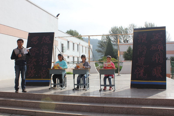 活动开始,德育处副主任黄甲首先对全体学生进行了规范读书写字姿势、正确用眼的教育。要求学生在平时的读书写字过程中一定要做到 “三个一”,即眼睛与书本保持一尺,身体与桌子保持一拳,握笔点离笔尖一寸。其次,各班选派三名学生在主席台上进行示范,同时让学生选出读书写字姿势最为标准的一组学生,进行大力表扬。通过示范引领,让学生对照自己平时的读书写字姿势并积极改进。最后,黄主任作了总结讲话,他说习惯的养成不是一朝一夕的事情,需要相当长一段时间,所以每位学生的应该持之以恒,把行为变成习惯,从而受益终身。