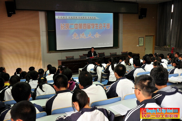2013年10月14日下午,长庆二中第四届学生会干部换届竞选大会在该校多功能厅举行,来自于全校各年级各班共计200余名学生代表投下了庄严神圣的选票,选举产生了第四届学生会组成人员。该校负责团队工作的郭建群老师主持了换届竞选大会。