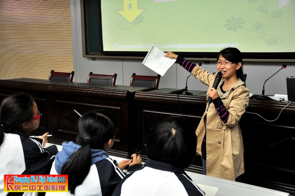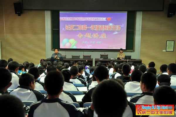 2013年10月16日、17日下午,长庆二中对今秋新入学的初一、高一新生进行了适应新学段心理健康教育活动,该校高一、初一400余名新生分别参加了此项活动。讲座活动由该校德育处黄建军主任主持,毕业于北京师范大学心理学院的王霞老师为全体与会学生作了 “主动适应,正确定位,自觉砺炼,华丽转身” 为主题的精彩报告。
