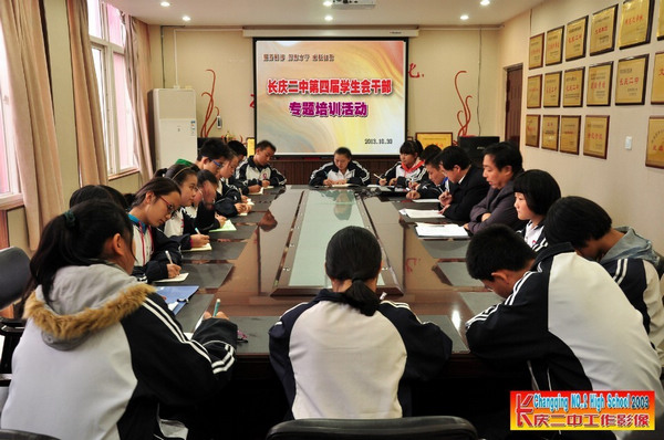 为了进一步提高学生干部的品德修养和业务能力,培养高素质的学生干部,长庆二中于2013年10月30日下午开展了第四届学生会干部培训活动。