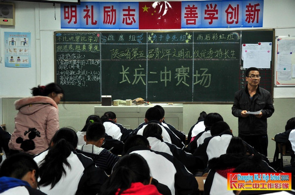 2013年11月8日,长庆二中利用晚自习时间举办了该校第五届陕西省青少年文明礼仪优秀特长生(英语类)选拔初赛活动,该校非毕业年级900多名学子分别在30个赛场参加了初赛活动。