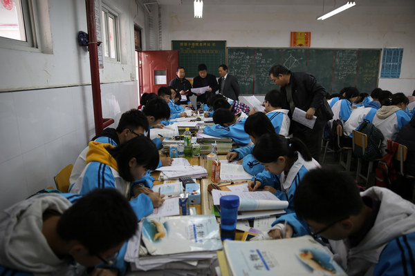上午第一节课,调研组成员采取走课形式,深入高一高二两个年级听课,对不同班级、不同学科、不同教师的课堂教学情况进行了整体观察。第二节课调研组采取集体蹲点形式,对高二年级周淼老师的生物课进行了全程观察分析。通过听课,对六十六中高效课堂教学进展情况有了直观的清晰的印象。