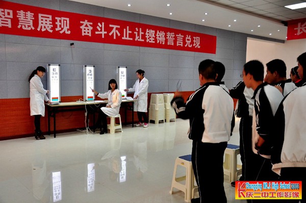 2013年11月27日至30日,长庆二中对今秋新入学的初一、高一两个年级学生进行了视力普查暨建档工作。此次视力普查暨建档工作由西安美迪格公司眼视光中心承担,该中心的专业人员利用课外活动时间,对400多名学生的视力进行了逐一检查外,对近视眼学生佩戴的眼镜进行检修,并为每一位学生建立了视力档案。随后结合普查中发现的问题,通过下发《告家长通知书》,为学生提出恰当的治疗建议。
