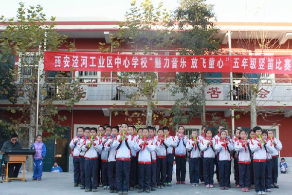 西安泾河工业区中心学校开展“魅力音乐、放飞童心”竖笛演奏校园文化广场活动