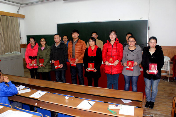 本次会议由校长张吉高主持。书记窦兴武首先做了题为《全力展示 体现职业追求 亮点纷呈 蕴含个人智慧总结反思 促进专业成长》的总结报告。他指出:本次赛教是在前期“同课异构”大教研活动基础上展开的,其目的是为了检验课堂教学改革的成效,为提高青年教师的业务素质,提升教学理念,创设相互学习、竞争的教学氛围,促进教师专业成长。报告从说课、上课、课后反思这三个环节中呈现出的亮点及不足之处进行了精彩的点评,言者情真意切,听者动容沉思;肯定之处欣喜可闻,失误之处痛惜十足……为了促进青年教师的专业化成长,书记窦兴武还对青年教师们提出了中肯的建议。接下来副校长甄永锋宣读了获奖名单,在欢快的音乐及教师们热烈的掌声中,校领导们亲自为王华等九名教师颁发荣誉证书及奖金。最后校长张吉高动情地说:青年教师是长庆七中的宝贵财富,本次赛教达到了预期的效果,这令人振奋;在活动中取得优异成绩的教师,有理由为之骄傲,因为这是你们自身教学能力的体现;成绩不理想的教师也不要灰心,因为知道了自己的差距就有了明确的目标,后来居上亦有道;更希望全体教师以此次活动为契机,认真学习、深刻体会,提高教学能力,这样不仅为了学校、为了学生、也更是为了自己。