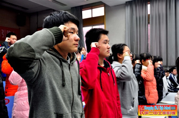 眼下虽已是凛冽冬月,窗外寒气逼人,却挡不住同学们火热的青春誓言。宣誓仪式在雄壮的国歌声中拉开序幕。马兆来副校长首先代表学校宣读了此次加入团组织的同学名单,并对他们的加入表示热烈欢迎。接着,老团员代表为新团员佩戴了团徽,颁发了团员证,并带领全体新团员高举右手,在鲜艳的团旗下庄严宣誓:“我志愿加入中国共产主义青年团,坚决拥护中国共产党的领导,遵守团的章程,执行团的决议,履行团员义务,严守团的纪律,勤奋学习,积极工作,吃苦在前,享受在后,为共产主义事业而奋斗!”青春誓言,高昂雄浑,表达了同学们对共青团组织的无限向往和为团组织增光添彩的豪迈激情,表明了他们积极要求进步,争做优秀青年的决心。在团旗下,新老团员代表先后发言,郑重承诺,以团员的标准严格要求自己,坚守信念、勤奋学习,锐意进取,不骄不躁,努力为团旗增色,为团徽增光,为共产主义奋斗终身;在热烈的掌声中,该校党总支书记顾云致辞,他对全体新老团员和全校同学提出了殷切的希望。顾书记在讲话中指出,团员同学要更深该地去体会加入团组织的无比光荣和自豪,也要明白加入团组织所应肩负的重大使命,希望他们以团员标准严格要求自己,学会做人、学会合作、学会学习、学会自主管理、学会文明,充分发挥团员的先锋模范作用,带动更多的同学共同进步。他在讲话中激励全校同学以团员同学为榜样,树立远大理想,增强责任意识,为个人、班级、学校、家庭、社会和国家的发展,为实现伟大的中国梦而努力奋斗;新团员入团宣誓仪式在全体与会人员嘹亮的团歌声中结束。